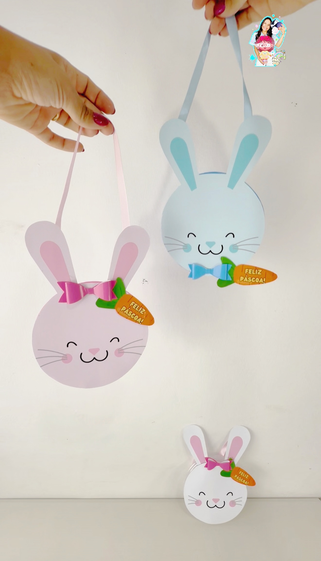 • arte do coelho branco com azul e branco com rosa